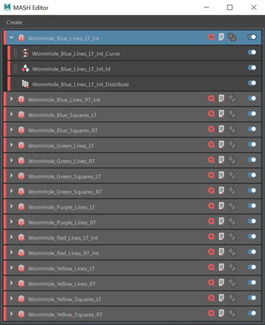 The Red and the white lines each had their own MASH network, so they could be individually controlled when animating.