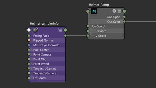 SamplerInfo nodes plugged into ramps helped mask different reflective and refraction attributes.